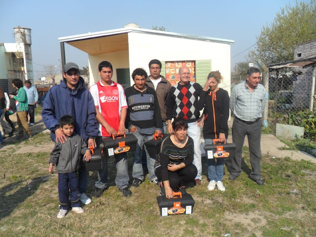 También entregaron un kit de herramientas a los jóvenes que concurren al curso de plomería que se dicta en el centro de Los sin Techo.