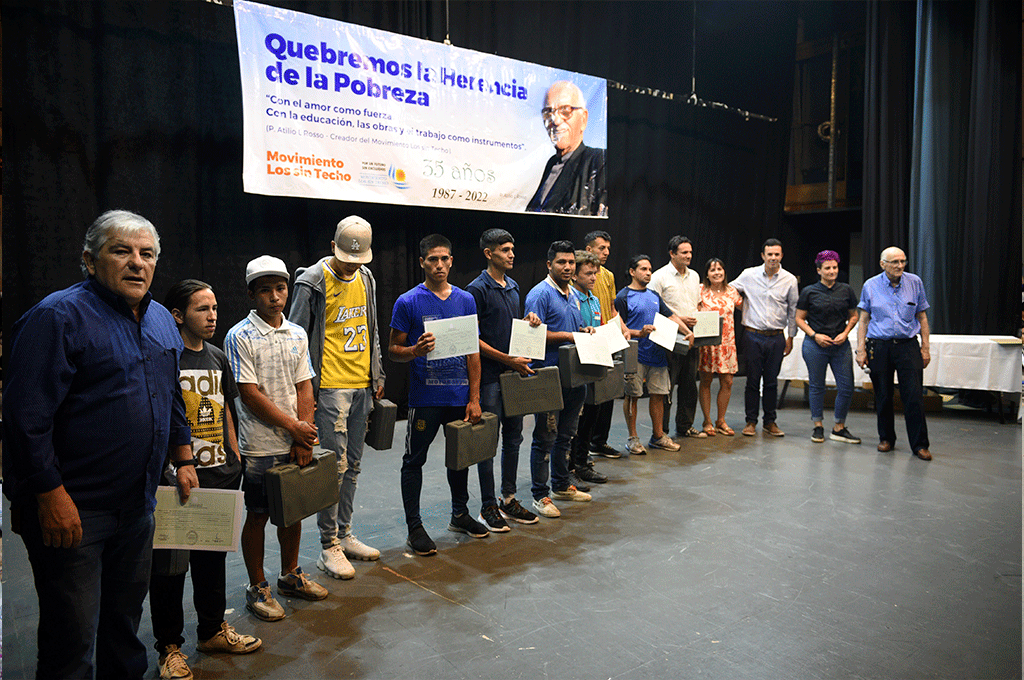 EL Movimiento Los sin Techo celebro su 35 años de vida con un acto masivo realizado en el Teatro Luz y Fuerza, donde se agasajo los miembros fundadores, se entregaron Tablet a madres que participan de proyectos educativos, además de herramientas de trabajo a egresados de los cursos de oficio brindados durante el presente año, y un reconocimiento a aquellos que desarrollaron actividades durante la pandemia del COVIC19 en los distintos servicios que se brindan en los barrios como comedores, merenderos, atención educativas y construcción de viviendas entre otros.