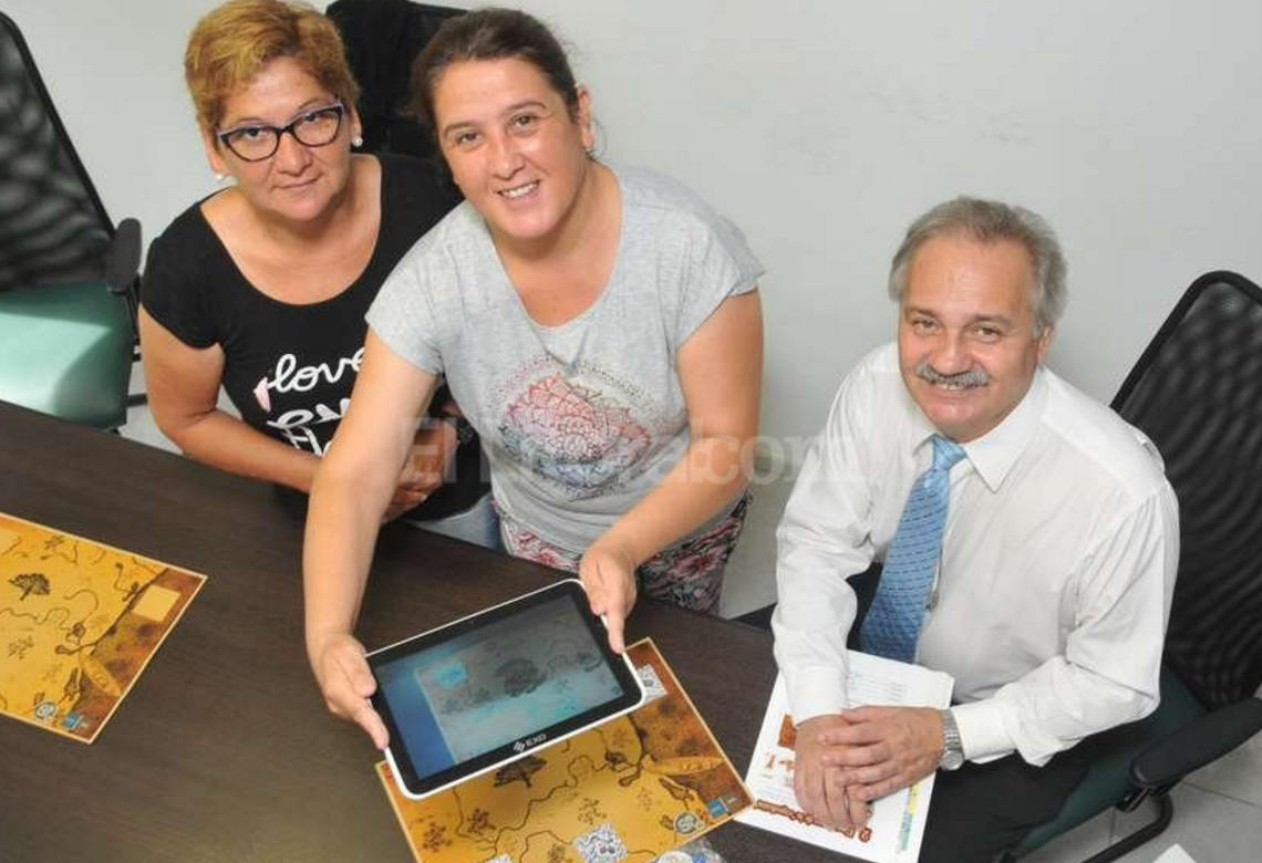 El juego vincula un elemento físico (tablero con un mapa impreso) y uno digital (tablet o celular con una aplicación de realidad aumentada). Tiene un itinerario con casilleros donde se van planteando problemas de matemática, física o ingenio, que deben ser resueltos para ir encontrando las claves y descubrir el tesoro. “Por ejemplo, Juan de Garay tiene 5 grupos de expedicionarios y sólo 25 cantimploras para ir a buscar el tesoro ¿Cuántas les corresponde a cada grupo? Hay fichas con dibujos de cantimploras para ir haciendo la división si tienen problemas”, ejemplificó.