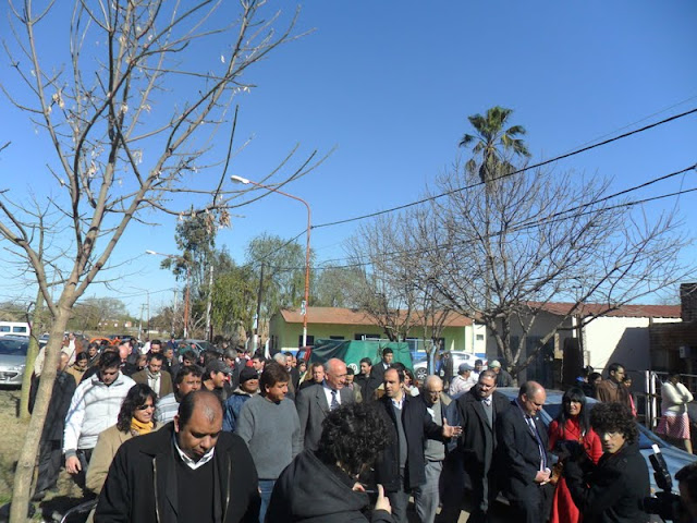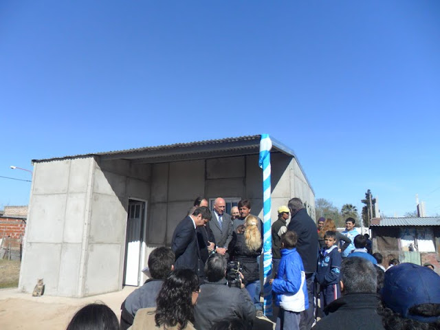 El titular de la Casa Gris estuvo acompañado por el intendente, José Corral, y el secretario de Estado del Hábitat, Gustavo Leone, entre otros funcionarios locales y provinciales. También estuvo el coordinador de Los Sin Techo, José Luis Ambrossino.