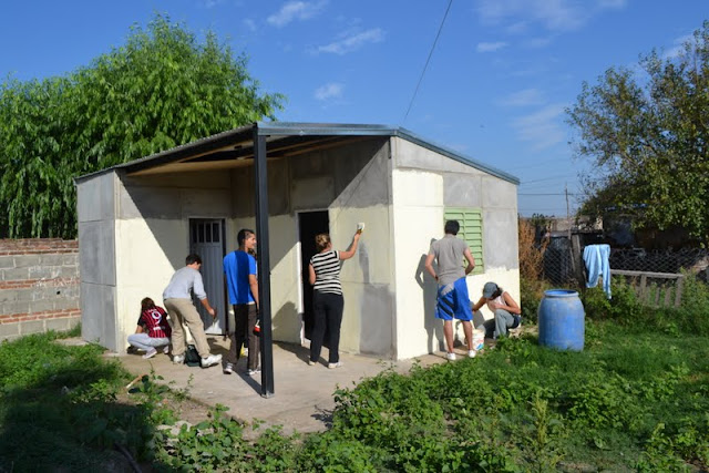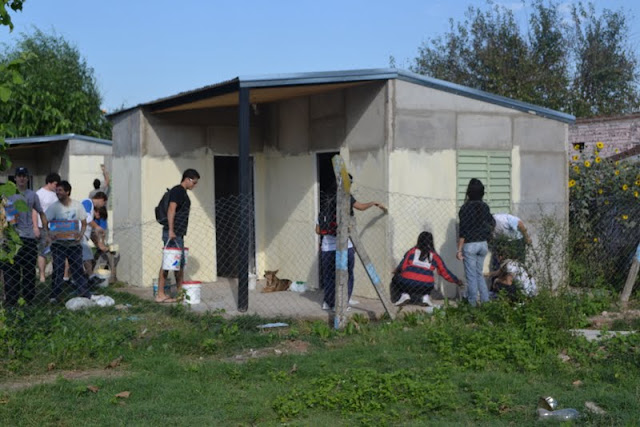 Los estudiantes residentes en el Colegio Mayor Universitario realizaron durante el mes de abril jornadas de trabajo voluntario en el plan de viviendas que el Movimiento Los sin Techo lleva adelante en el barrio Villa Oculta.